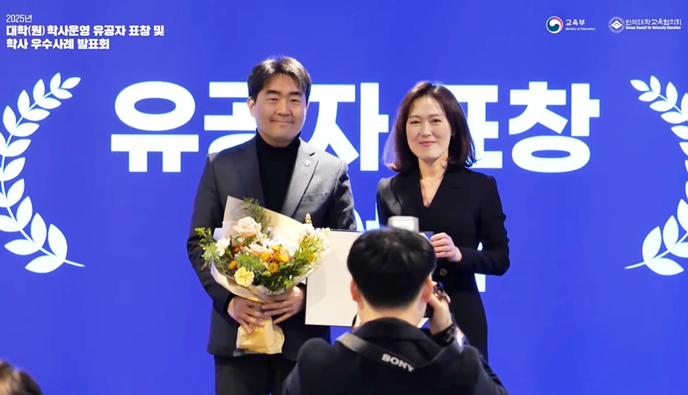 ▲[왼쪽] 안정주 팀장(대학원교학처 교학행정팀)이 교육부장관상을 수상했다. 안정주 팀장(대학원교학처 교학행정팀)이 대학원 학사 행정 혁신에 기여한 공로를 인정받아 교육부장관상을 수상했다. 안 팀장은 지난 2024년 대학원 교학행정팀 팀장으로 발령받은 이후, 대학원 행정 전반의 체계화와 고도화를 이끌며 학생 중심 학사 운영 체계 구축에 중추적인 역할을 해왔다. 특히 대학원 학사 전주기 디지털화와 제도 개선을 통해 행정 효율성을 높이고 교육 경쟁력을 강화했으며, 학생과 연구자가 학업과 연구에 집중할 수 있는 환경 조성에 기여했다. 이와 함께 강의실·소회의실·유학생 상담실 등 공간 재배치 및 리모델링을 추진해 학습·연구 편의성을 개선하고, 대학원 구성원 간 소통과 교류 활성화를 이끌었다. 안정주 팀장은 “학생과 연구자가 학업과 연구에 전념할 수 있도록 행정의 역할을 ‘지원’에 두고 제도를 지속적으로 개선해 온 점이 좋은 평가로 이어져 뜻깊다”며 “앞으로도 학생 중심의 안정적인 대학원 학사 운영과 교육 품질 제고에 최선을 다하겠다”고 소감을 밝혔다. [대학뉴스 제보] 죽전 홍보팀 : 031-8005-2032~5, 천안 홍보팀 : 041-550-1061